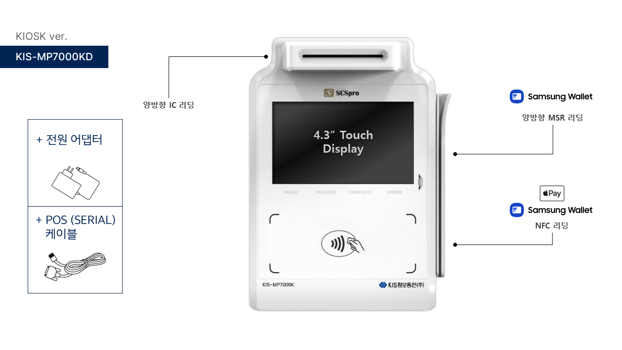 KIS-MP7000KD 키오스크 전용 리더기 카드단말기 KIS정보통신 > 서명,멀티패드