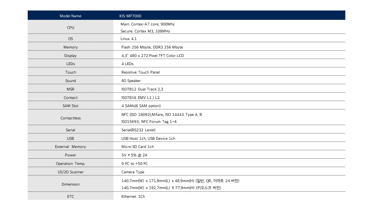 품명 KIS-MP7000KD