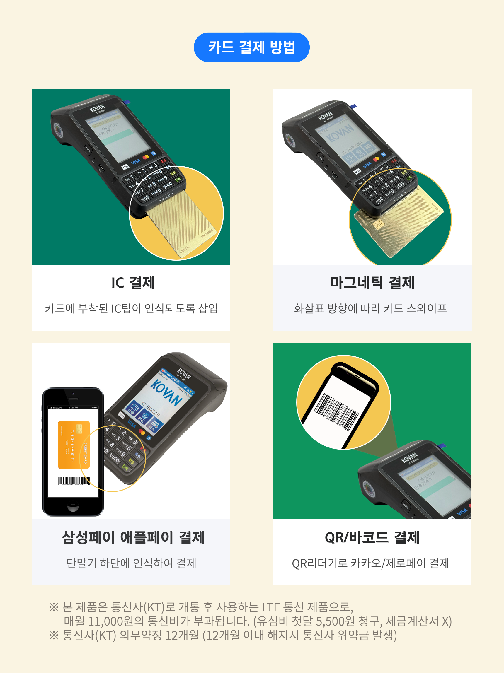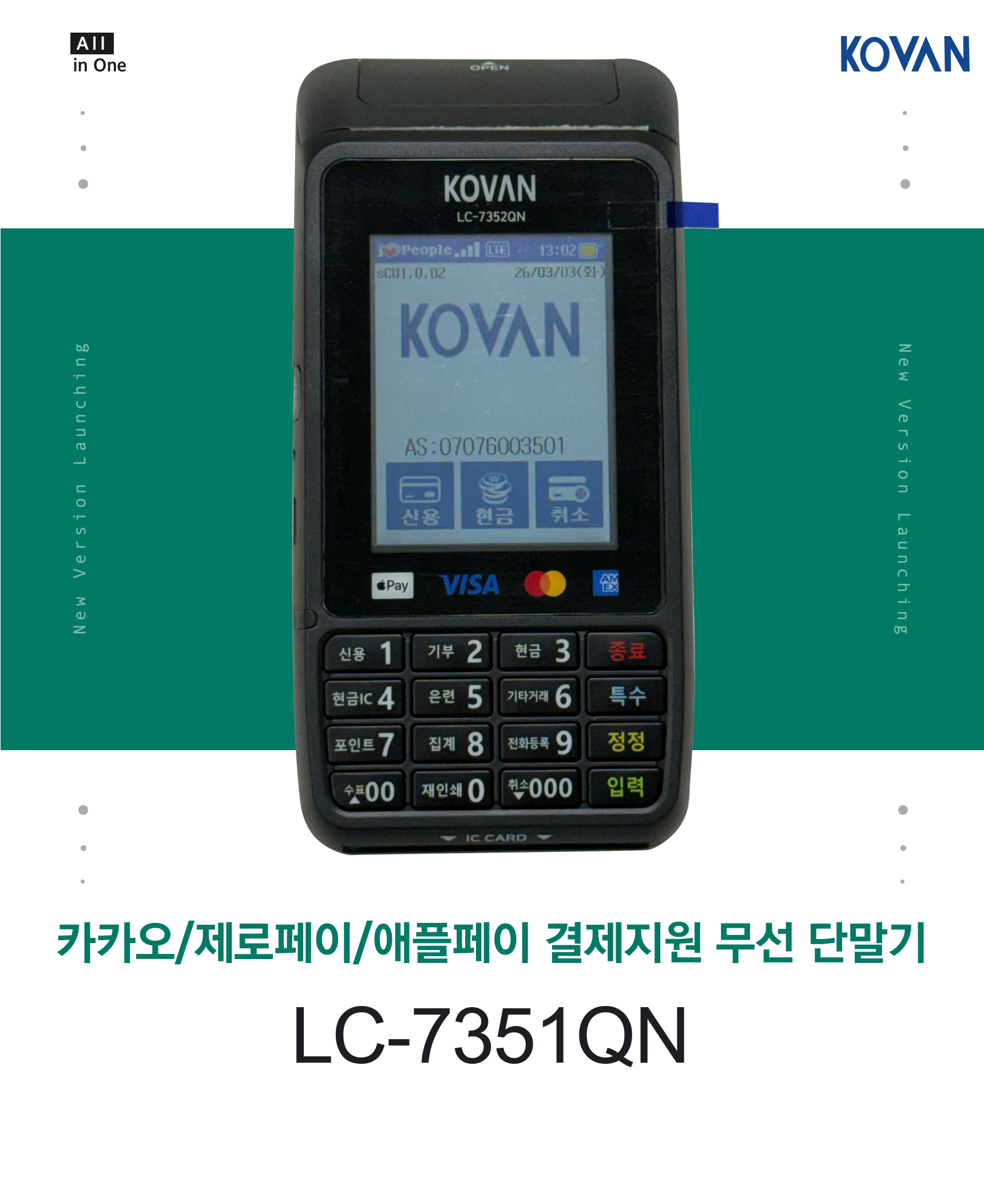 LC-7351QN 무선카드단말기 (통신사 SKT) 삼성 애플 제로 카카오페이 KOVAN 코밴
