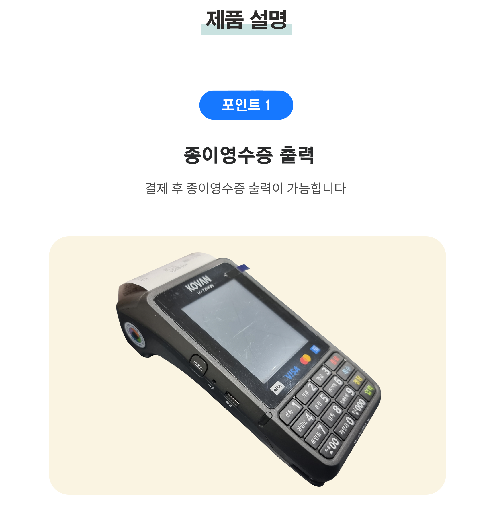 주의사항 1. 본 제품은 일시불 구매상품으로 기본 휴대용 신용카드 결제 단말기를 세팅하여 발송해 드립니다. (장비만 구매는 불가능합니다)
