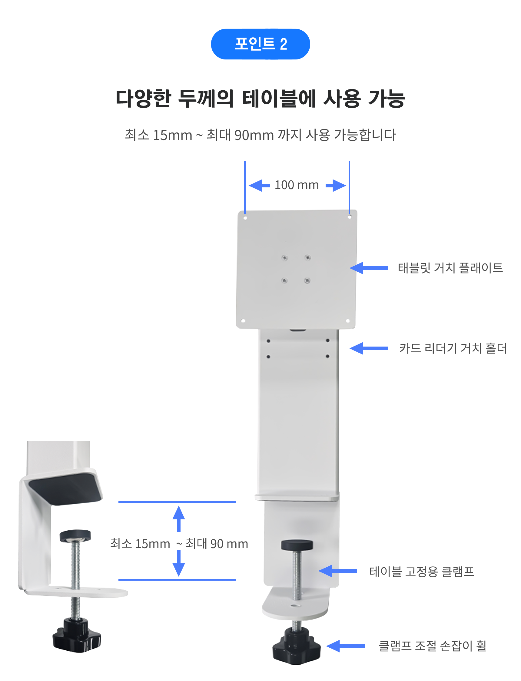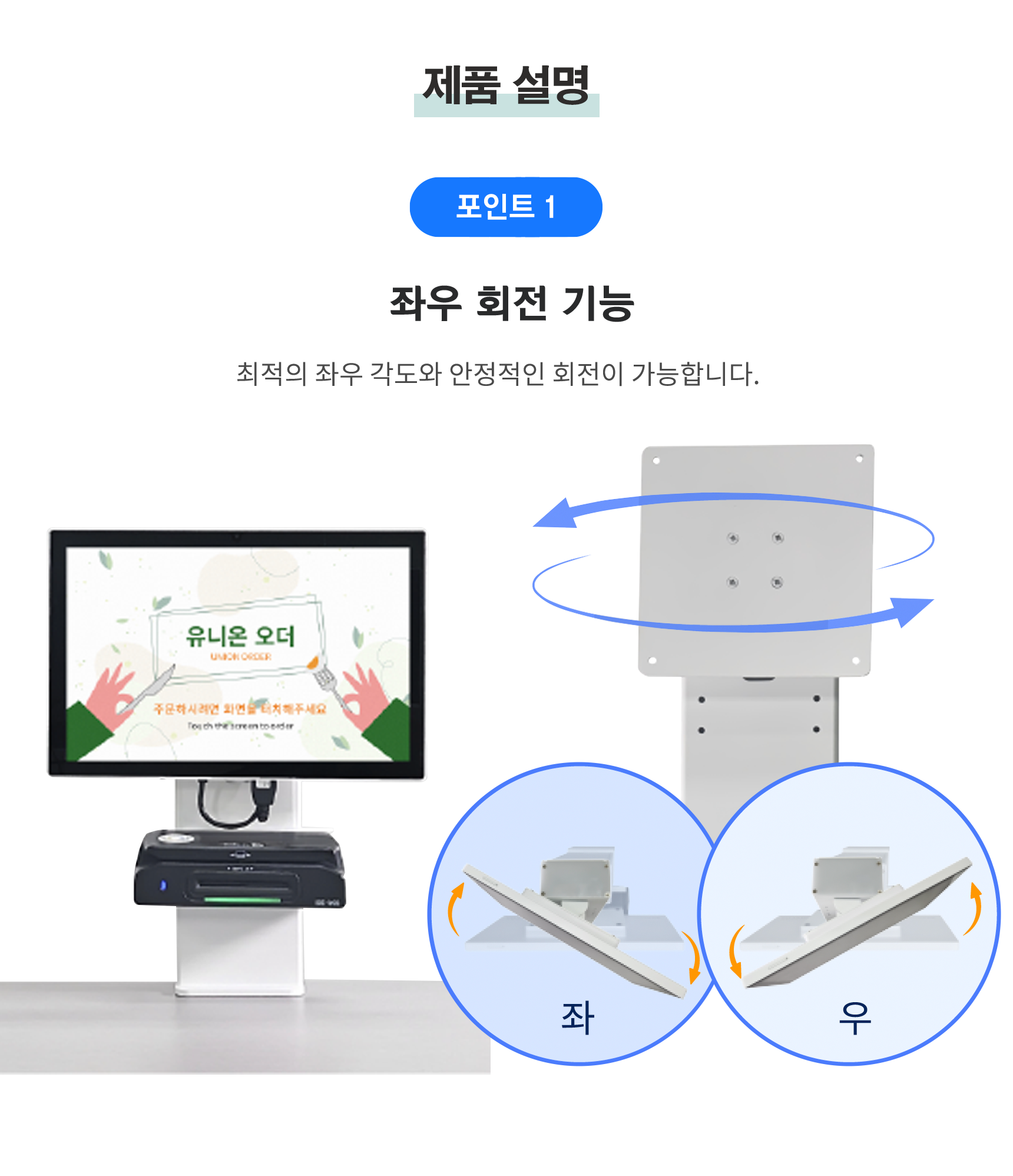 태블릿거치대 식탁 책상고정 회전 100mm베사형 태블릿전용 테이블오더용 > 주변장비