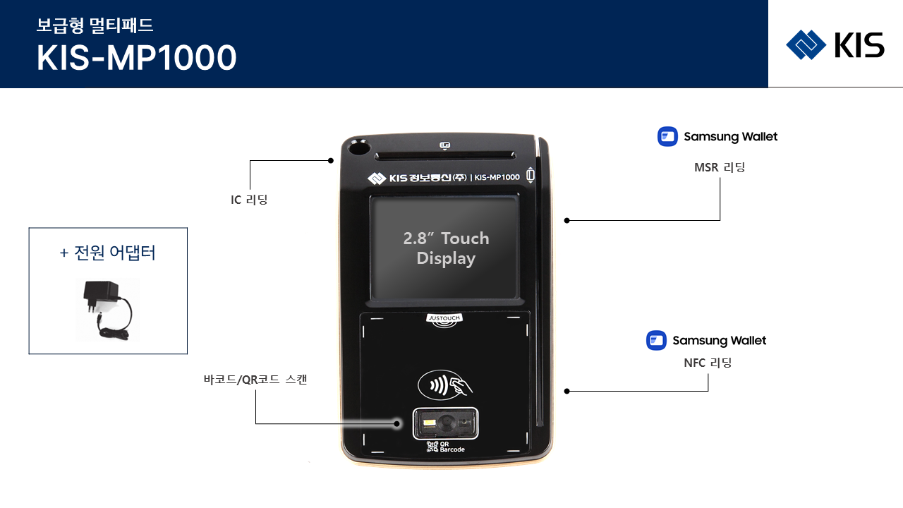 KIS-MP1000 멀티패드QR코드 양방향IC리딩 KIS정보통신 > 멀티/서명패드